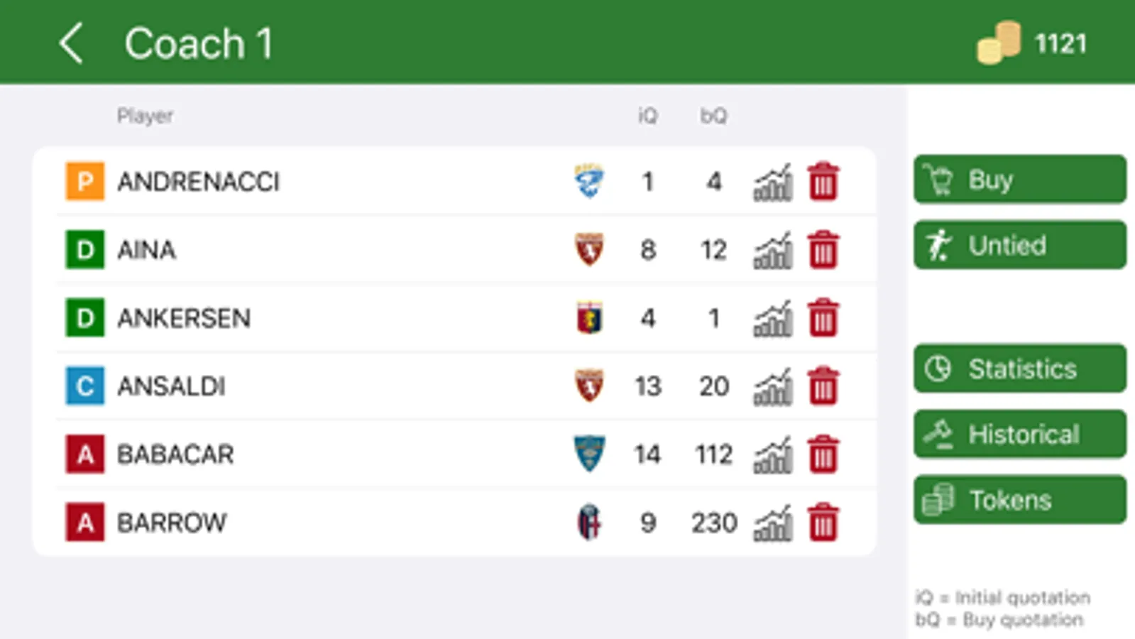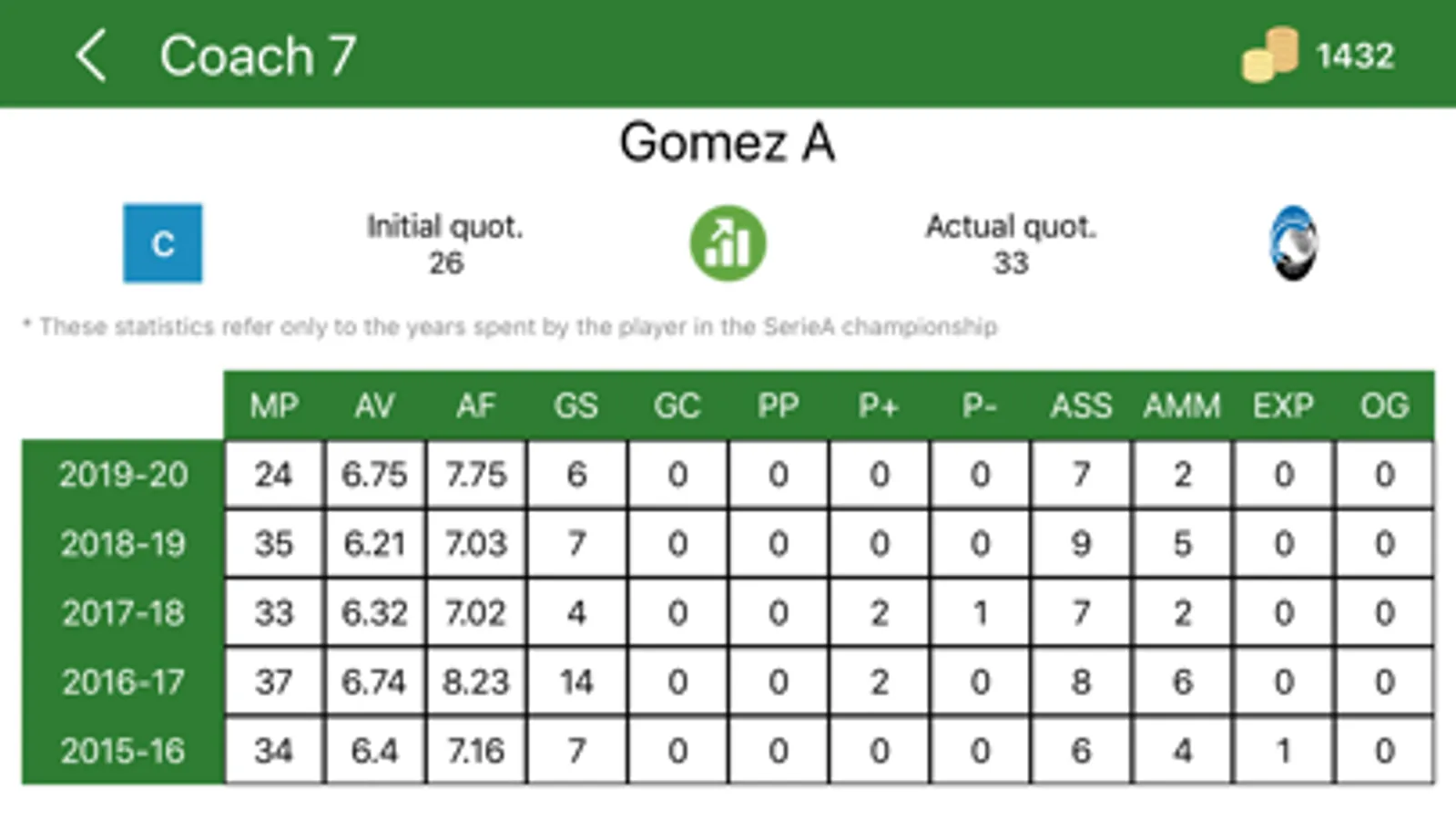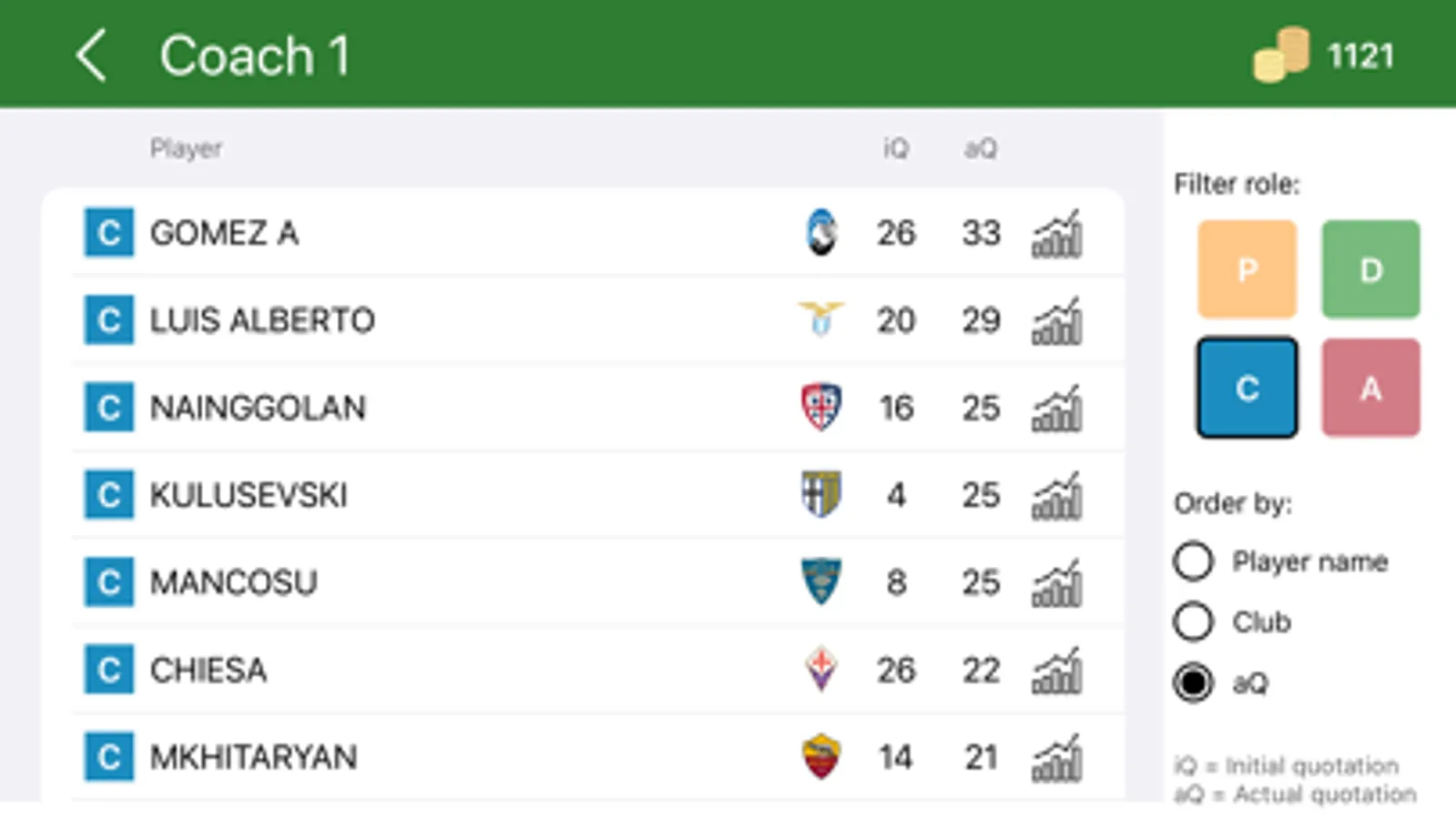Players list and relative quotations updated daily from Fantacalcio (ex Fantagazzetta).