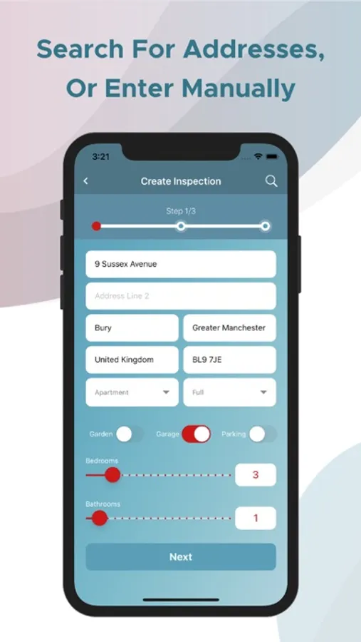 -Select number of bedrooms and bathrooms, the app will add the number of selected rooms to your pre-set list of rooms