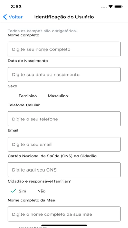 Aplicativo voltado ao cadastro e atualização de informações pessoais junto à rede pública municipal de saúde dos municípios conveniados.