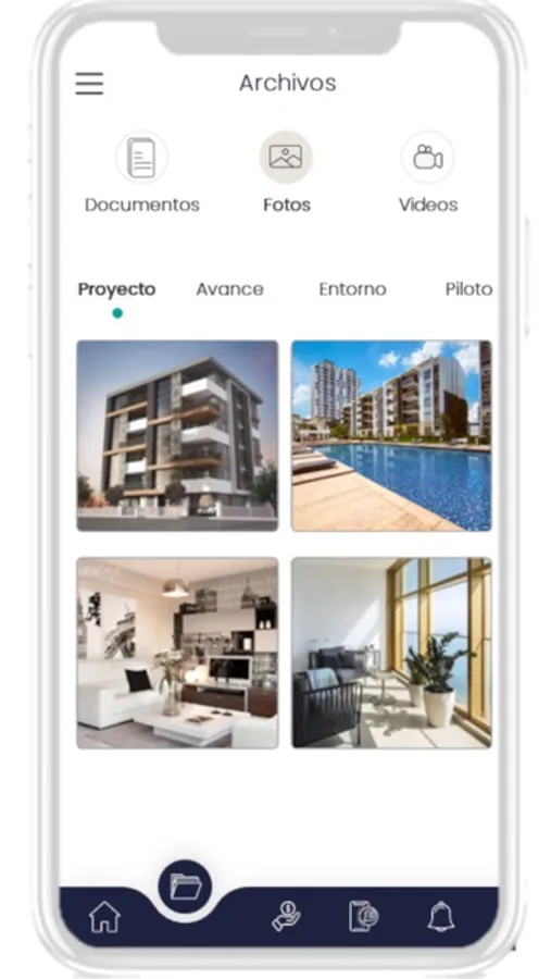 A través de esta aplicación podrás ver fotos y videos de tu proyecto, ver el estado de tus pagos, recibir novedades sobre el avance de obra, descargar tus documentos, resolver dudas con la inmobiliaria y mucho más.