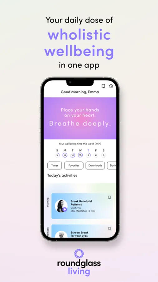 We are not just another meditation app. At Roundglass Living, experience the rhythms of yoga, the power of breathwork, the tranquility of sleep stories, the nourishment of healthy recipes, and the resonance of healing music. Immerse yourself in knowledge and techniques from globally renowned experts, including pioneering psychologists and neuroscientists, seasoned yoga therapists, soulful sound healers, and insightful Buddhist monks. With versatile practices ranging from quick two-minute refreshers to profound 30-minute sessions, it’s easy to integrate wellbeing into your daily life and build lasting healthy habits.