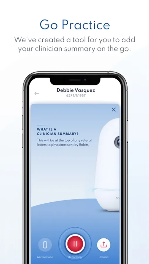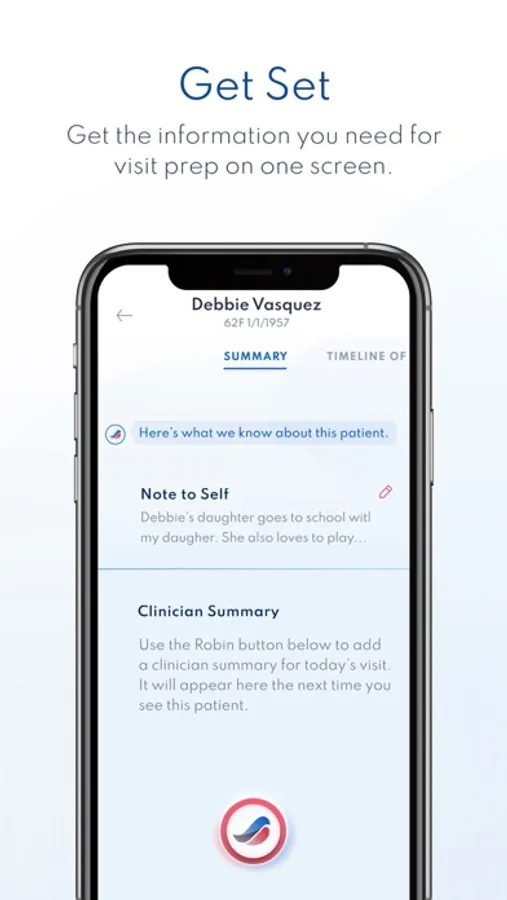 Introducing the Robin App! It’s the perfect companion to the Robin Assistant™ so you have the power of Robin in your pocket. Now you can easily add what matters most to every patient encounter—your clinical summary—even when you are on the go. You can also view your schedule, get the information you need for visit prep, see a timeline of patient care, add photos, and request stat notes.