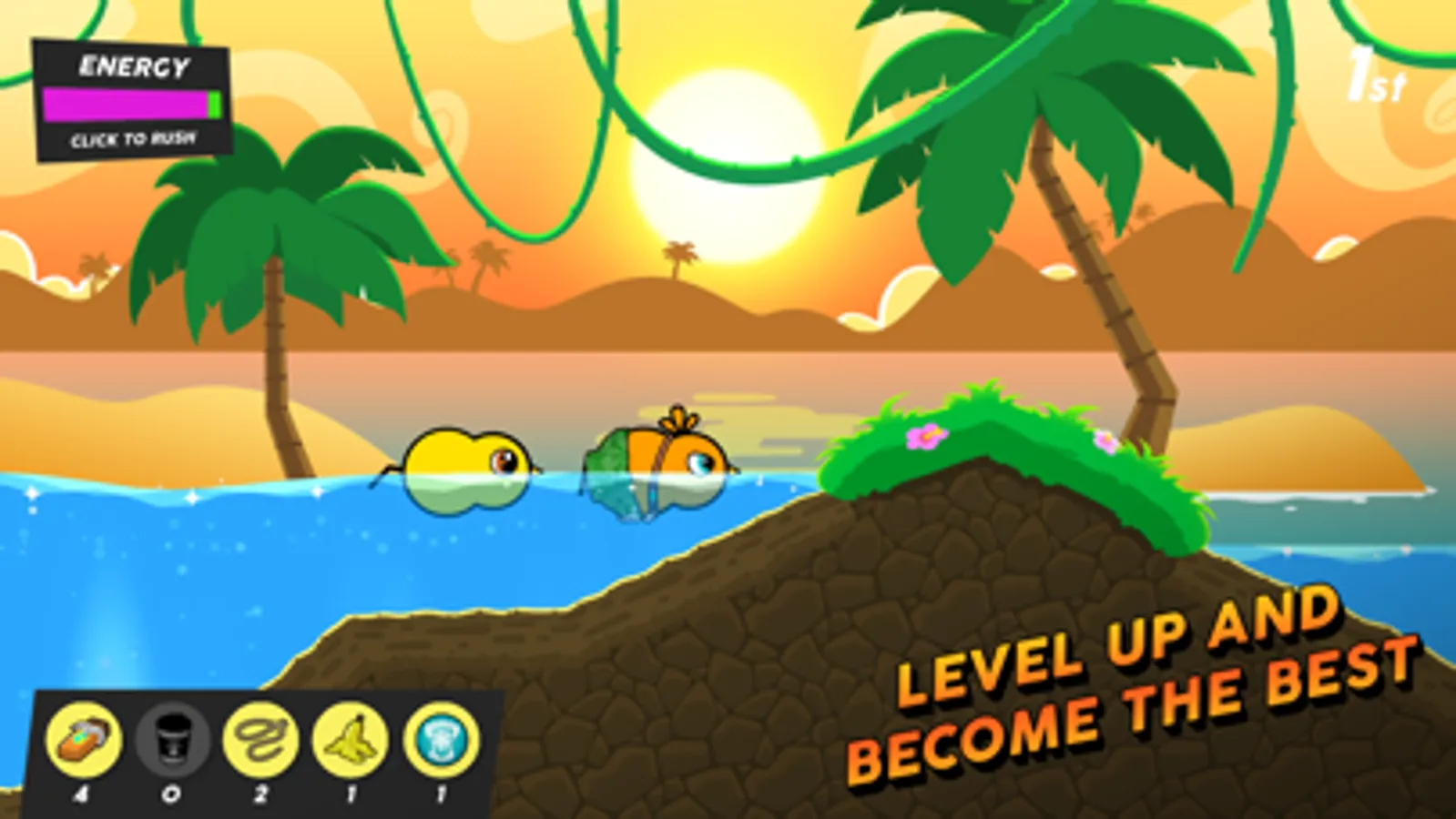 Some ducks are not interested in racing, all they want to do is battle! Take them on with 25 new weapons, new power ups and new abilities. Train strength to improve your attack power, health to increase your hitpoints and jumping to gain the ability to dodge attacks!