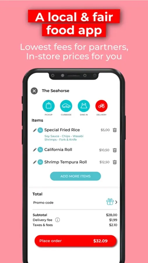 Enjoy some of your favorite restaurants and meals without marked up prices for ordering on an app.