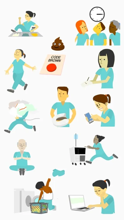 A sticker pack for nurses that doesn't shy away from the gross parts, the funny times, and the touching moments that make nursing what it is!
