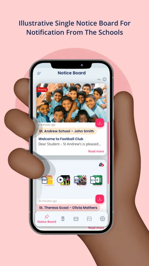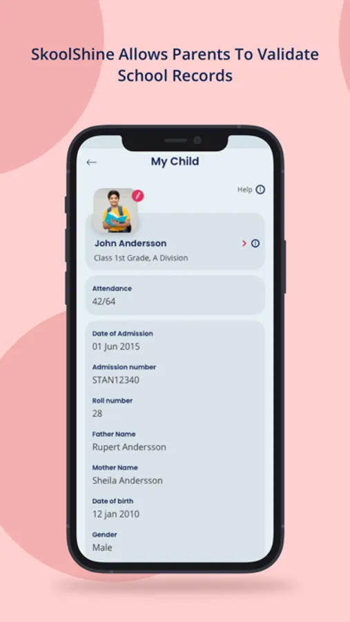 • Parents will get pre-authorised notification to install the app - this way the data is secured and parents will be able to view the details of their wards.