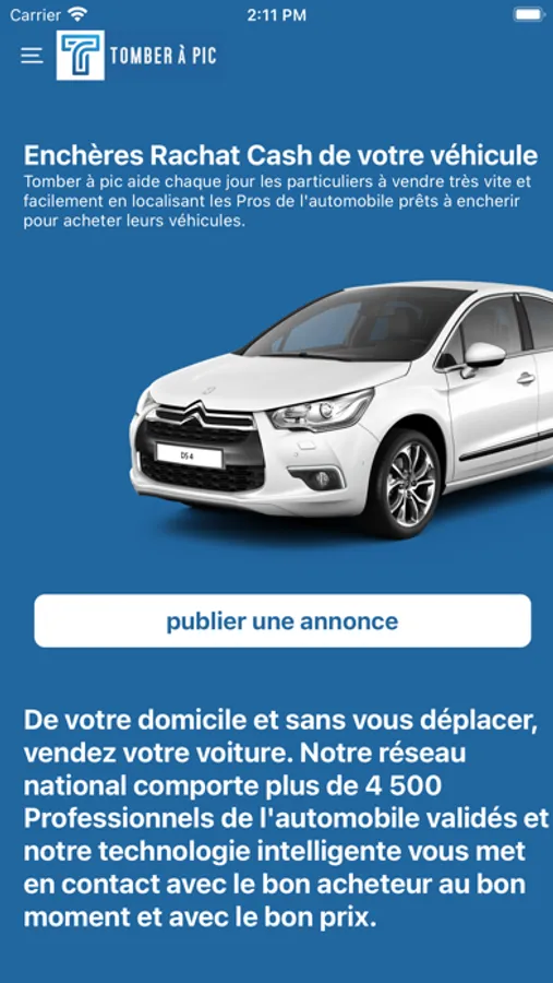 Tomber à pic aide chaque jour des centaines de vendeurs particuliers à vendre leurs véhicules très vite et facilement en localisant les Pros de l'automobile prêts à encherir pour acheter leur véhicule.