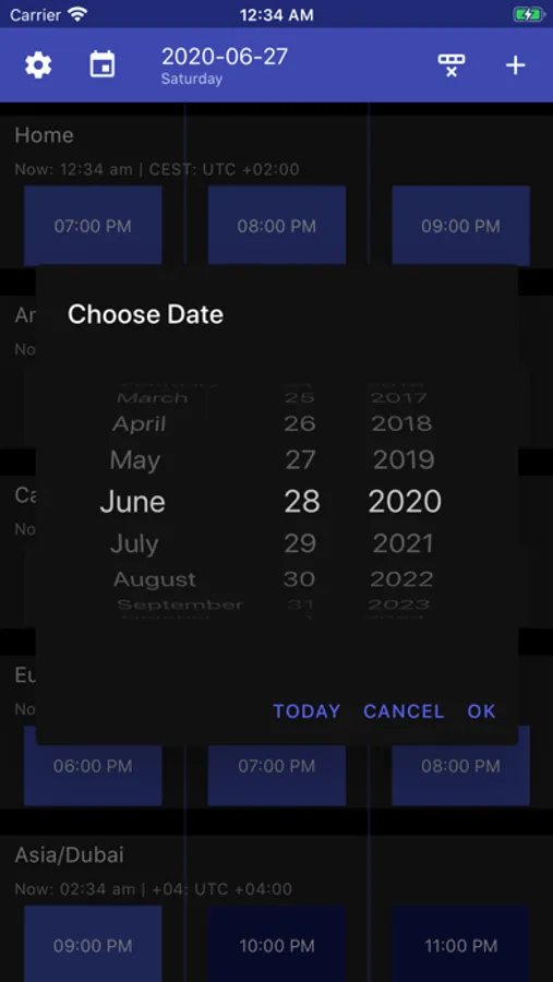 Our App uses the official TimeZone Database and has offline support for the next 10 years.