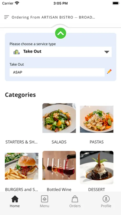 - Order and Pay using a saved credit/debit card (support for all major credit and debit cards).