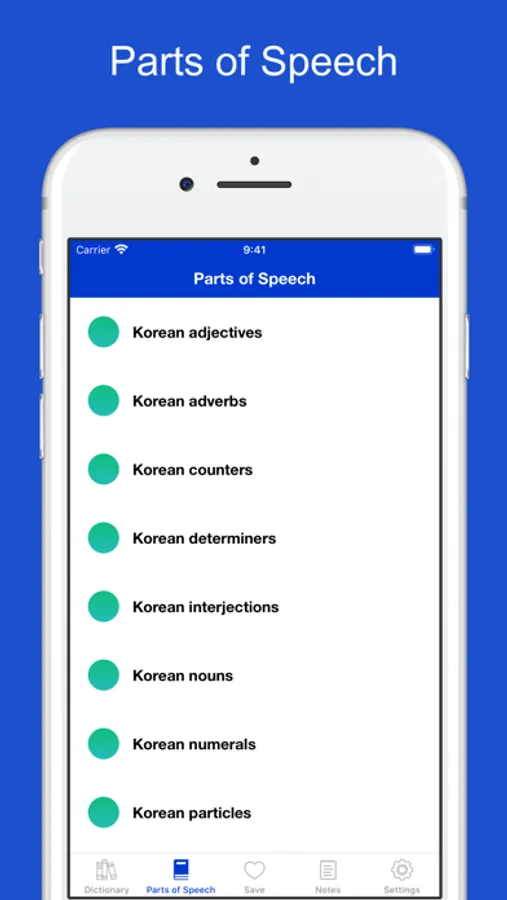 - Korean nouns, adjectives, verbs, adverbs, numerals, etc.