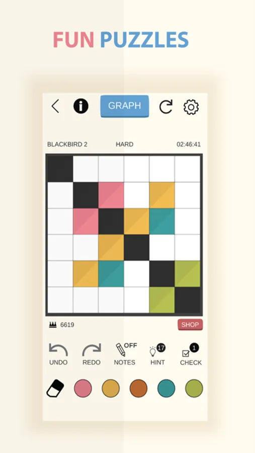 Color The GOM is a unique and fun puzzle game, invented by us! The solution involves color and numbers. You can switch between two modes during the game - matrix mode and graph mode.