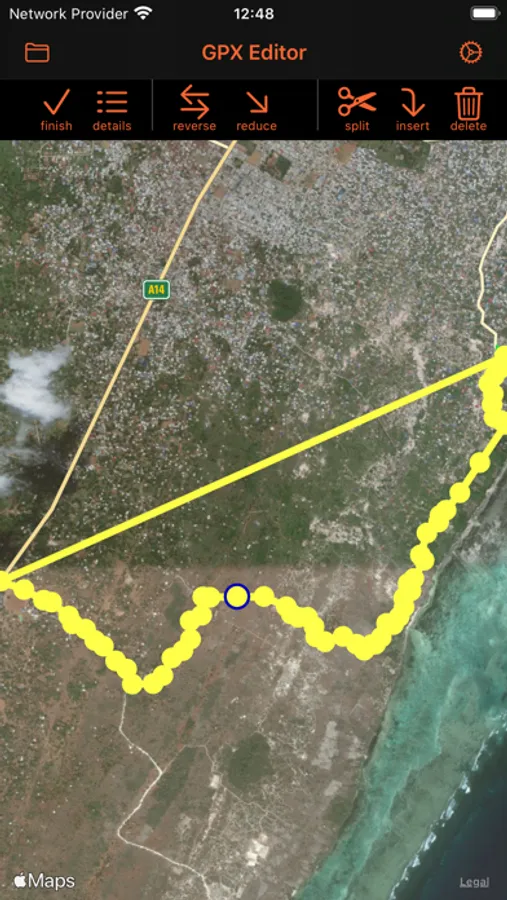 GPX Editor allows reversing, splitting, merging and thinning of tracks and visualizes the track in a Map. GPX Files can be imported from and exported to other Apps.