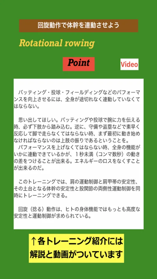 ダイヤルで選んで「To Training」ボタンを押すと、トレーンング解説画面に移ります。その画面の「Video」ボタンを押せば、トレーニング紹介動画をみることができます。