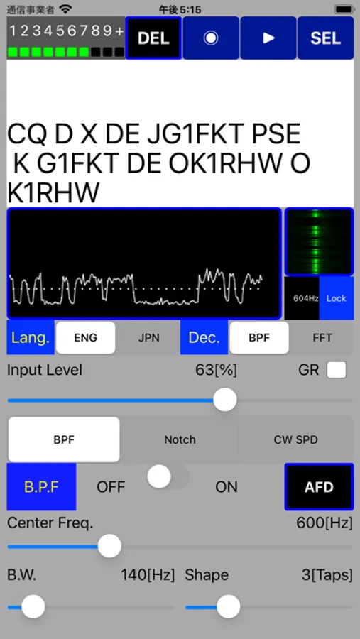-The decoder using FFT automatically follows the strongest signal in the band by AFD (Auto Frequency Detector) and AGC (Auto Gain Control). You can also hold the AFD / AGC parameters by pressing the Lock button.