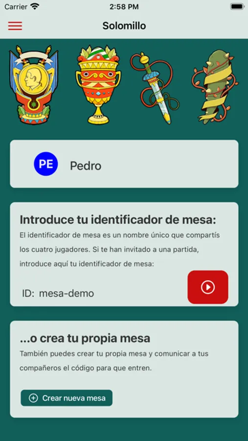 Cada mesa virtual tiene un identificador, que es un nombre único alfanumérico. Puedes acceder a una mesa existente tan sólo con teclear el código de identificador de la mesa. También puedes crear tu propia nueva mesa e invitar a tus amigos compartiendo el identificador. Intenta utilizar identificadores únicos para evitar que otros accedan a tu mesa por accidente.