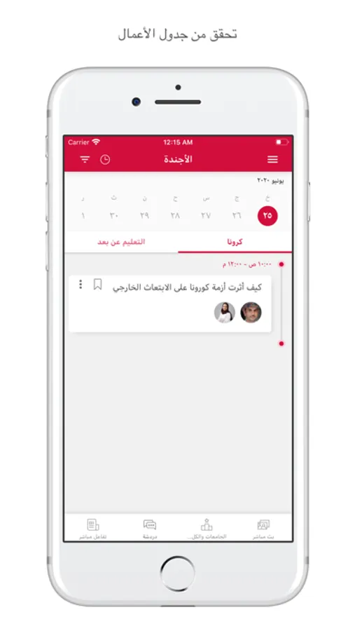 ٢) الانضمام إلى اجتماعات مع جامعات محتملة/ باستخدام ميزة الاتصال المرئي والدردشة.