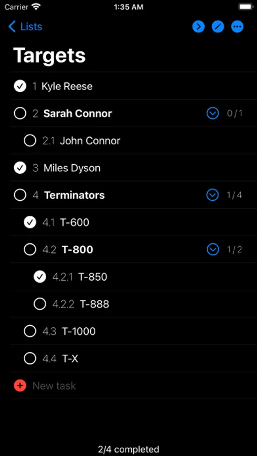 "Neslis" is a simple app for organizing lists with endless nesting! Auto-numbering list items and sharing lists will help you organize your lists.