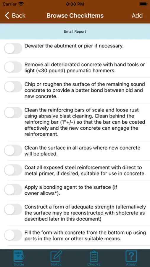 This guide provides a better understanding of the process to patch concrete bridge decks. The guide describes how to plan and execute a concrete deck patching operation with an emphasis on identifying repair areas, surface preparation, and placing, finishing, and curing deck patch material. The practices presented will help minimize potential premature failure of bridge deck patches and contribute to a successful deck patching operation.