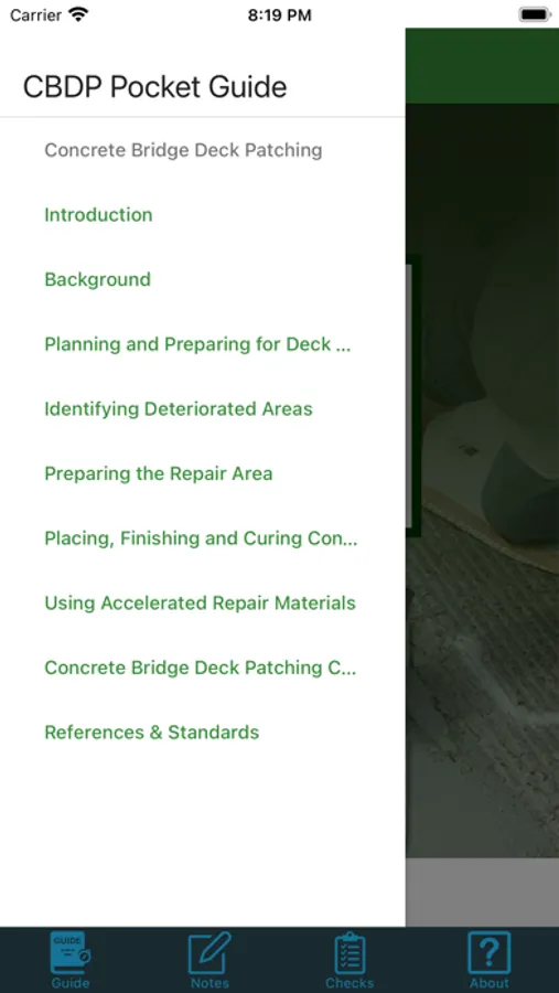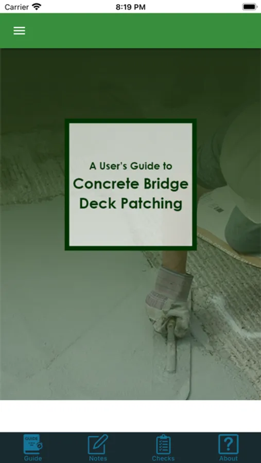 This guide provides a better understanding of the process to patch concrete bridge decks. The guide describes how to plan and execute a concrete deck patching operation with an emphasis on identifying repair areas, surface preparation, and placing, finishing, and curing deck patch material. The practices presented will help minimize potential premature failure of bridge deck patches and contribute to a successful deck patching operation.