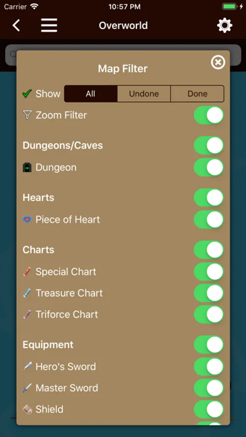 Unofficial offline map for The Legend of Zelda Wind Waker. The map features the locations of: