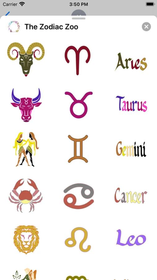 The zodiac's symbols represented by the terminology, symbol and graphic art associated with each sign. Fashioned in the colors associated with each signs unique energy and power. Surprise your horoscope loving friends and communicate in your own language, the language of the stars!!!