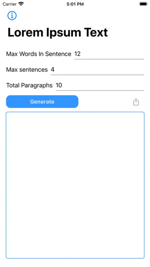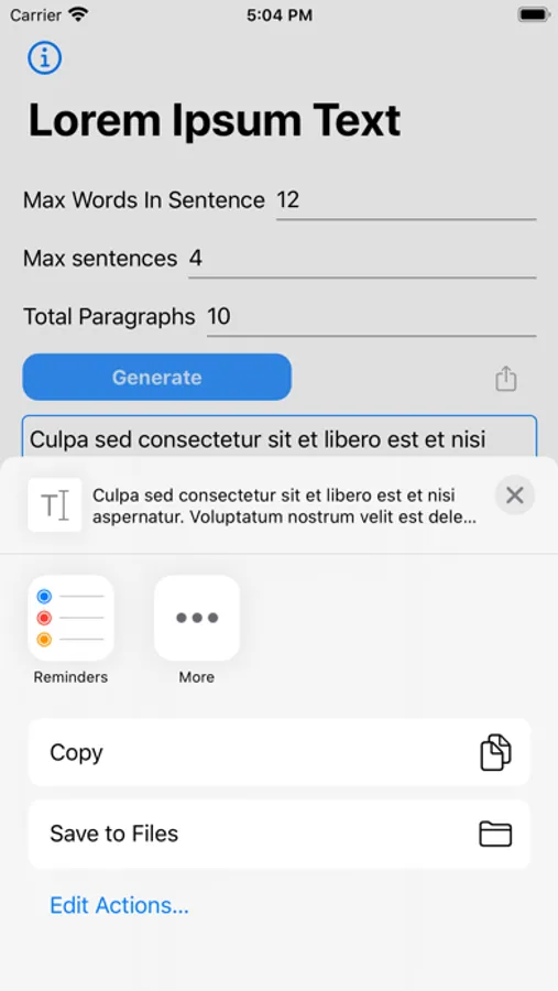 Application to generate Lorem Ipsum Text. You can set maximum words to use in sentence. Maximum sentences in paragraph and amount of paragraphs to generate