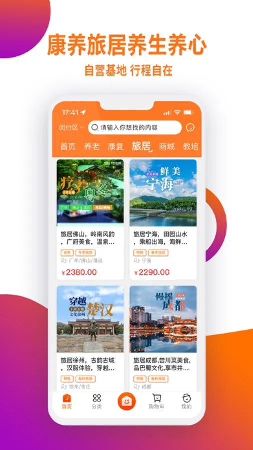 专业靠谱的一站式养老服务平台,满足老年人各层次全方位的不同需求。为长者提供社区居家养老服务、养老机构查找及预约入住、康复与健康管理服务、老年文娱教育、康养旅居、适老化商品、长者公益活动等内容,线上线下融合,让养老服务触手可及,让天下子女尽孝有道,让阳光照进长者心田。