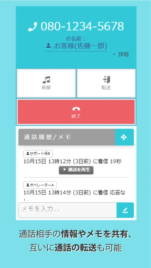 ・一般電話、およびユーザ間で通話でき、各種通話機能や履歴機能などで通話がより便利に