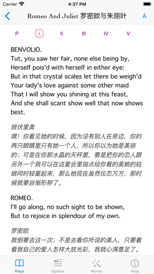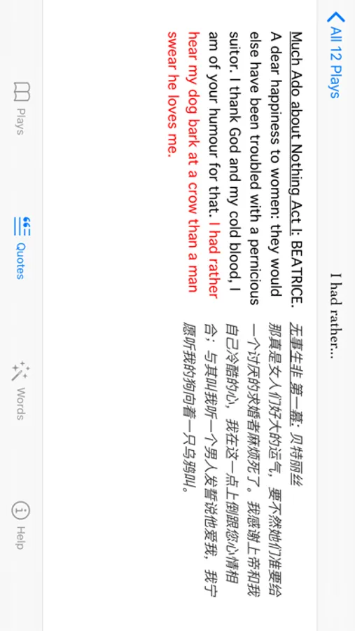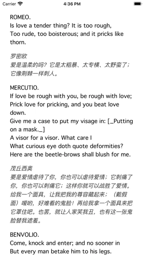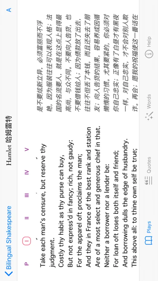 3. 收集莎翁作品中最著名的100多条警句,并可直接查看中英对照的正文;