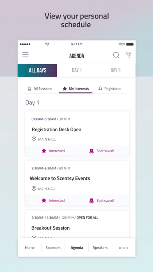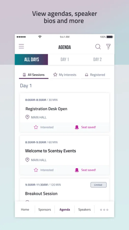 Maximize the excitement of your next Scentsy event with the Scentsy Events App. Events are more meaningful when you feel engaged in the content and connected with your fellow Consultants. That’s why our app features live polling and social media integration, plus the ability to and meet and message other Consultants registered for the event. You can even view your achievements in the Recognition Gallery, get reminders when sessions are about to start, and view or rewatch content, all from your smartphone!