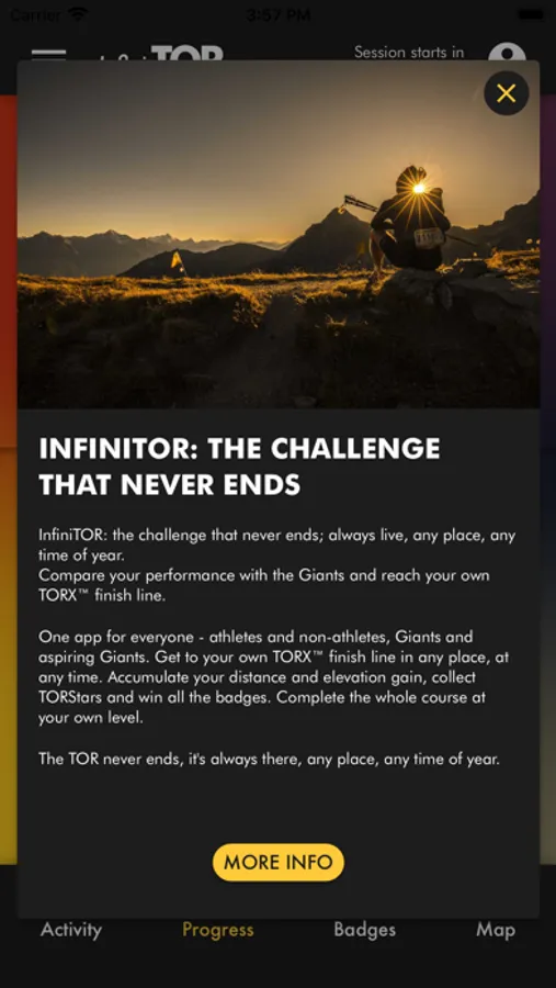 InfiniTOR: the challenge that never ends; always live, any place, any time of year. Compare your performance with the Giants and reach your own TORX™ finish line.