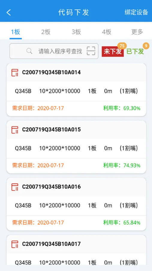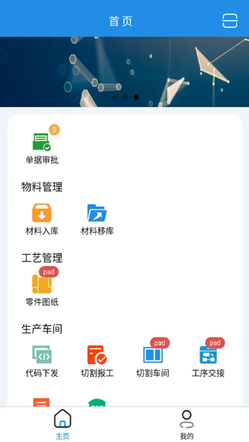 SinoMES平台移动端程序是一款使用于数控切割车间的应用。操作人员在切割时,可使用移动端查看套料图;根据套料图进行信息移值并下发切割代码至机床;切割完成后进行切割报工和零件流转。主要功能包括切割代码下发、切割报工、零件发放、零件签收、零件查询、单据审批、我的绩效、基础设置、离线数据、员工信息、个人中心等。
