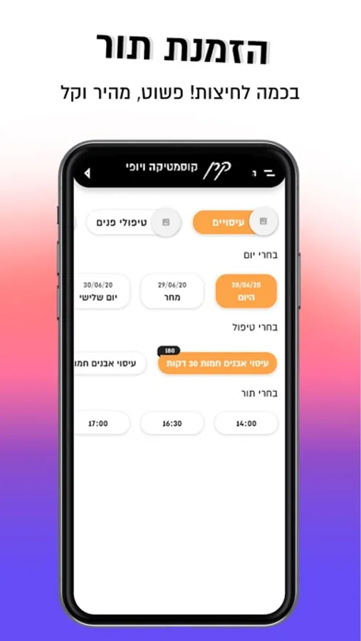 יש לבצע הרשמה קצרה כדי שנכיר אתכם ומשם כל מה שנשאר זה להזמין תור למתי שבא לכם.