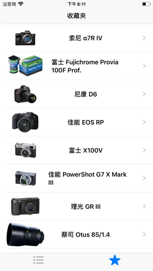 - 佳能、尼康、索尼、富士、徕卡、哈苏、飞思、海鸥、凤凰