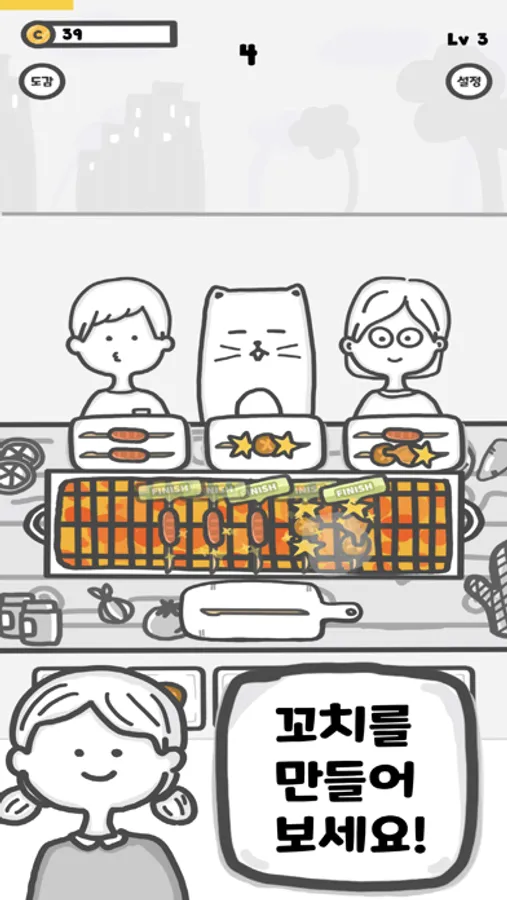 그 돈을 잘모아서 꼬치 재료에 재 투자하세요!