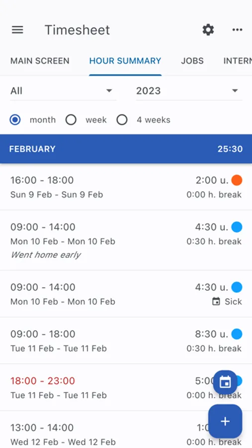 Timesheet is the best timesheet app. Keep track of your worked hours easily. Simply set some default values like your your job, how much break time you take, and travel compensation. These values will be set every time you clock-in so you won't be wasting your time setting the same values every day.
