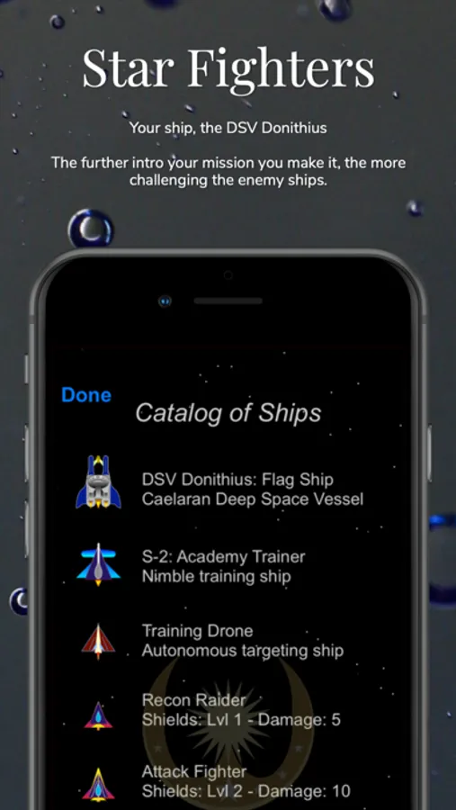 You have been recruited to train at the academy and on your graduation, you will take the helm of the mightiest ship in the Star Federation. It will fall to you and the DSV Donithius to navigate and defeat ships of the Dakcinian Empire, asteroid fields, worm-holes and mine-fields as you seek out Dakciniain Raiders, Fighters, Cruisers to defend the home worlds from outside aggression.