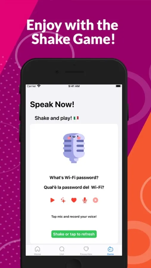 To improve your understanding and pronunciation of your Italian, you can play with our shake game.