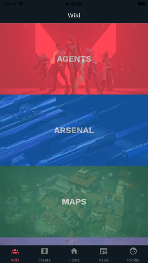 - Wiki catalog with agent, arsenal, map, and lore details.