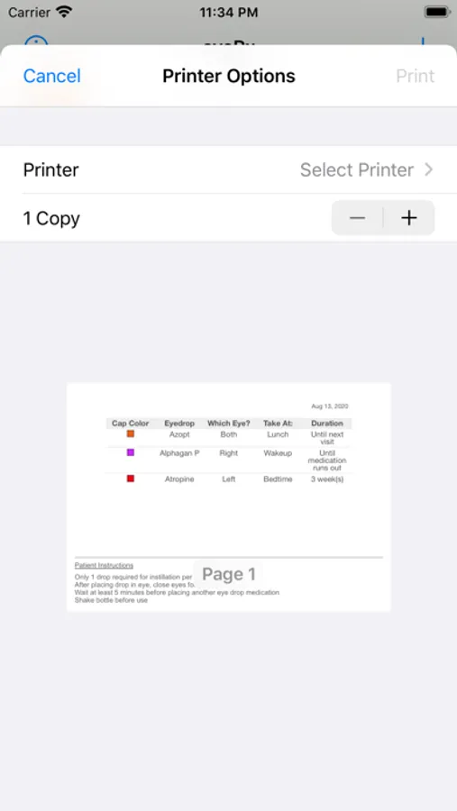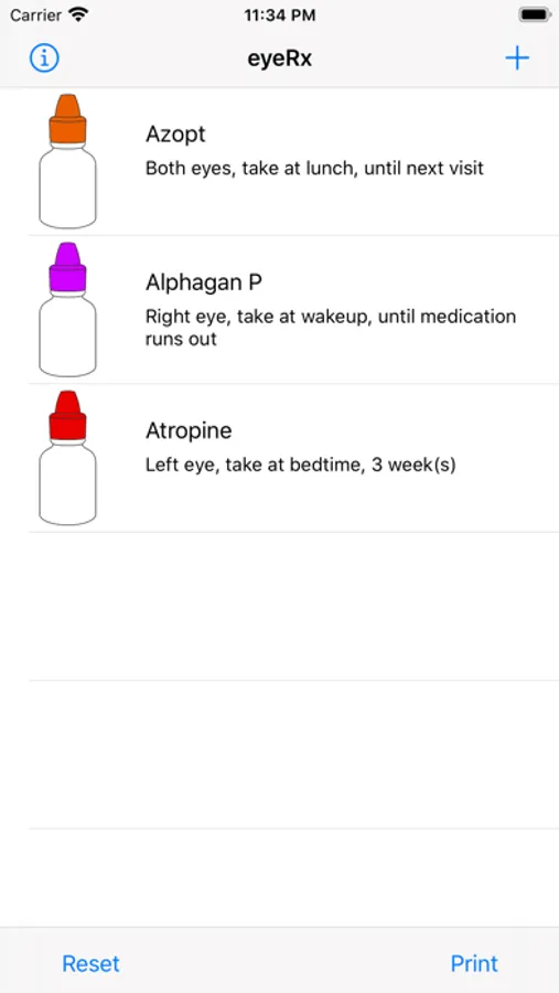 Use eyeRx to create patient friendly handouts with patient specific eye drop regimens! With a wide range of ophthalmic medications, a patient regimen can be quickly created using the dropdown or search function, which is then sent to a local wireless printer.