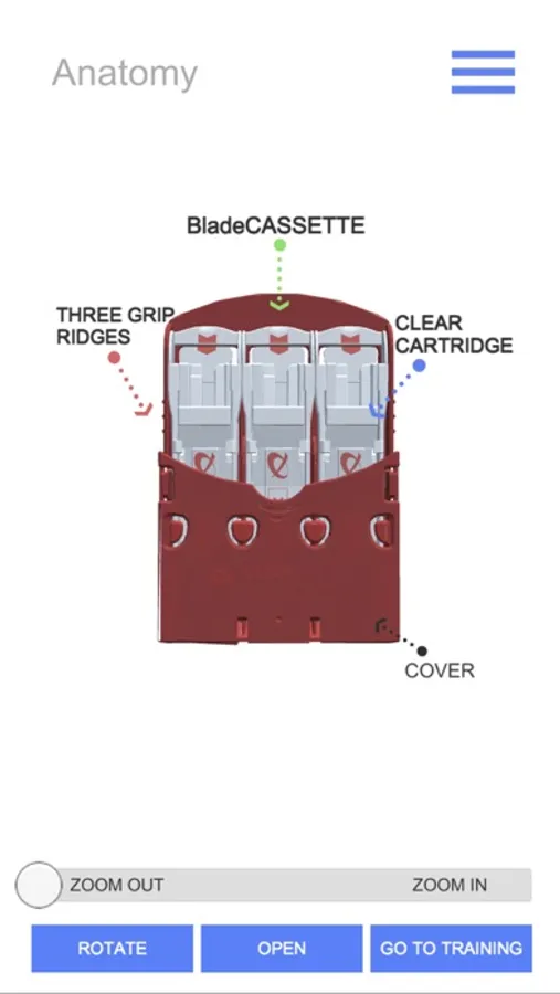 The app includes interactive 3D renderings of the famous BladeCASSETTE scalpel blade remover as well as a step-by-step training module on how to use it. Users will get a chance to try out their knowledge in the testing section and will be able to generate a certificate once they pass – proof that they are able to remove scalpel blades safely.