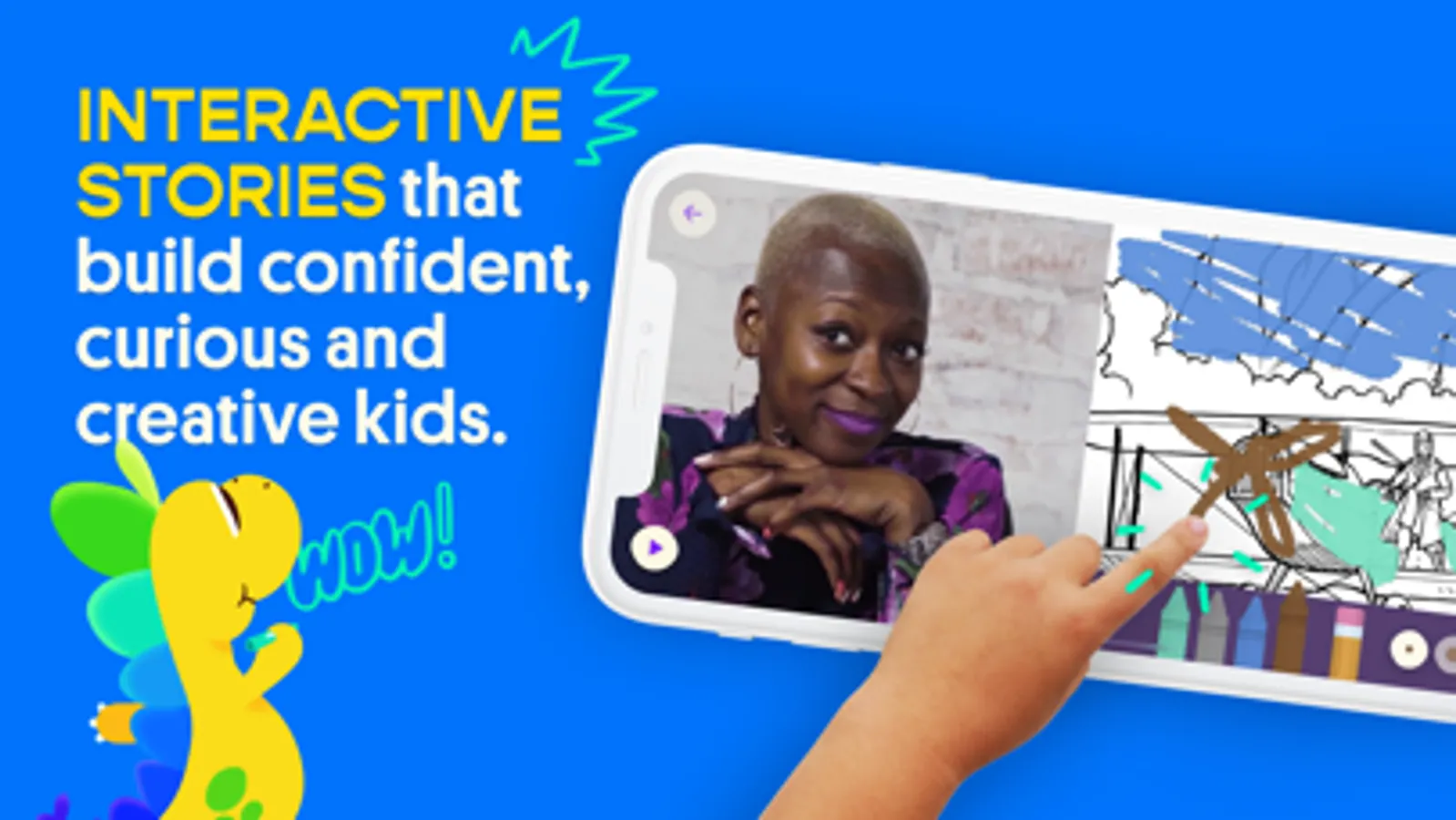 Hellosaurus is an interactive story platform where kids fuel their imagination through epic story adventures. Kids step into the co-starring role of curious explorers, creative innovators, and confident heroes, unlocking an entirely new way to play alongside their favorite creators.