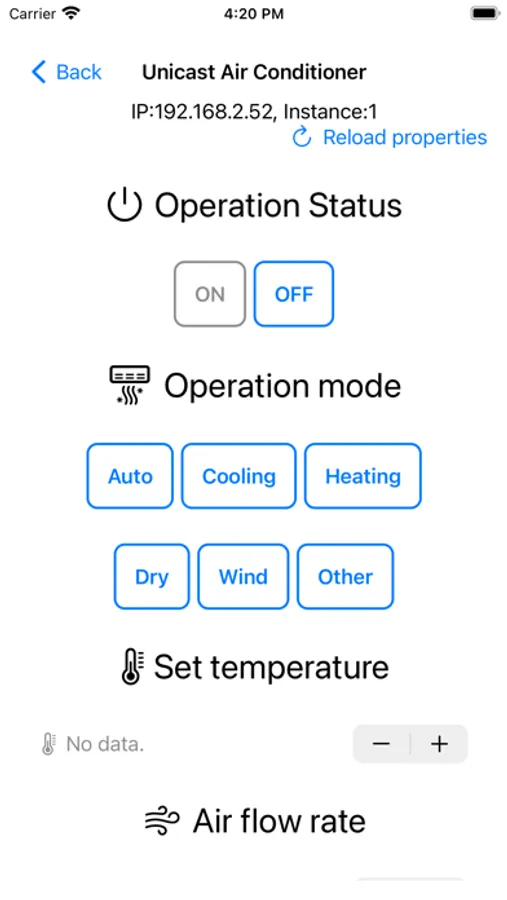 LANに接続されたECHONET Lite規格対応のエアコンをiOSから操作するコントローラアプリケーションです。ECHONET Lite規格はhttps://echonet.jp/で一般公開されており,UDP/IPを利用した情報家電の通信プロトコルとして日本では標準的な規格として推奨されています。この通信プロトコルに対応することで,メーカーに依存せずにスマートフォンやタブレットなどの情報端末からエアコンに対する詳細コントロールを利用可能となります。