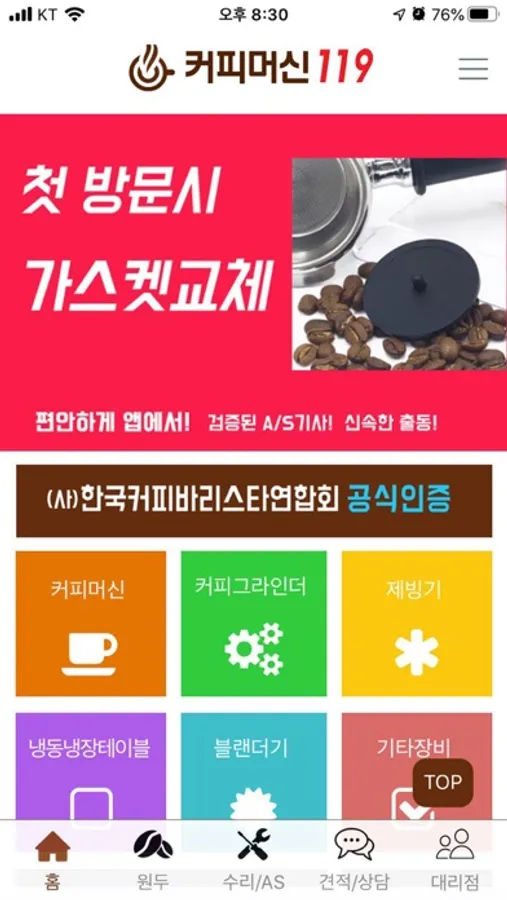 커피전문점 필수 앱, 커피머신119