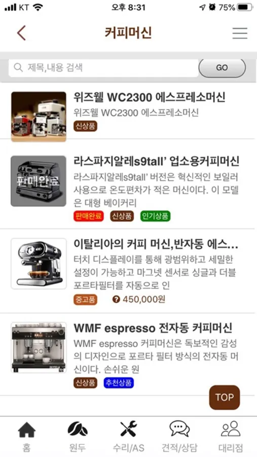 문의: 커피머신 119 / aha600@hanmail.net
