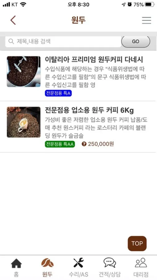 ▶ 커피원두 공급 및 부자재, 테이크아웃 용품 공장직거래