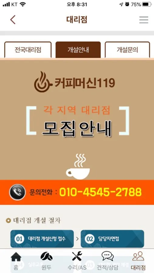 커피전문점 12만개 시대의 커피전문점 필수(앱)어플, 커피머신수리 및 AS 전문, 커피머신119 앱이 출시되었습니다.