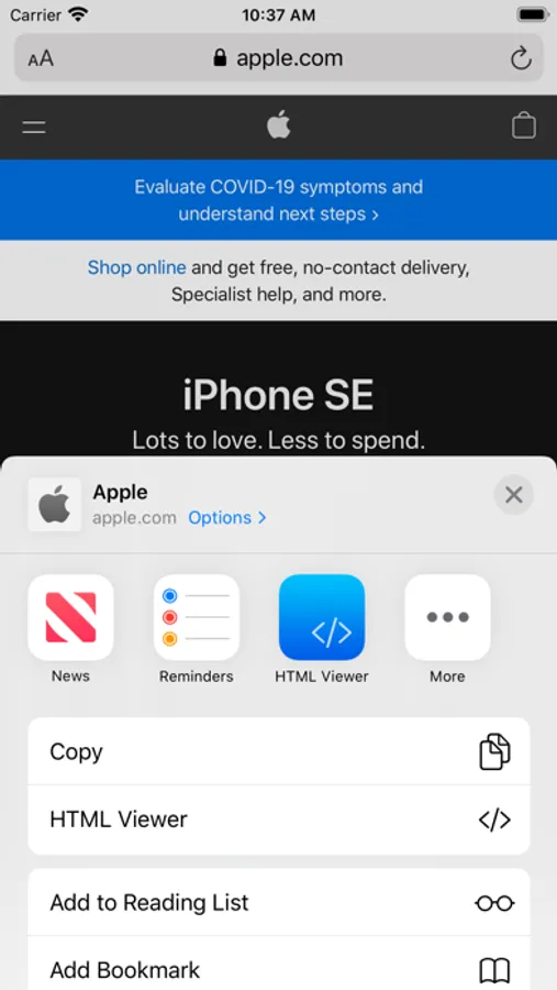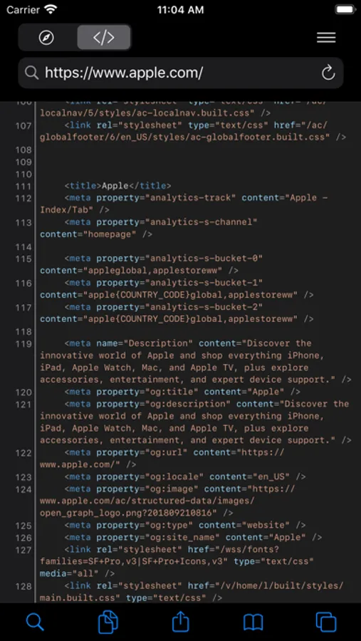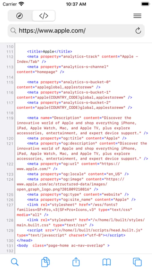 You can view the source code by URLs, and of course, you can also view the source code from Safari's share button.