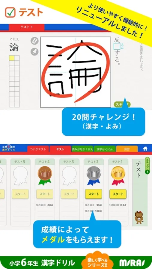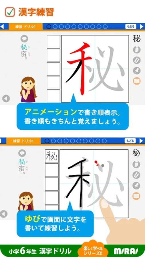 Since its release in 2011, the "Elementary School Kanji Drill" series is a long-selling app that has been used not only by individual users but also by schools and cram schools. This app series supports all 1026 characters that elementary school students learn in 6 years.