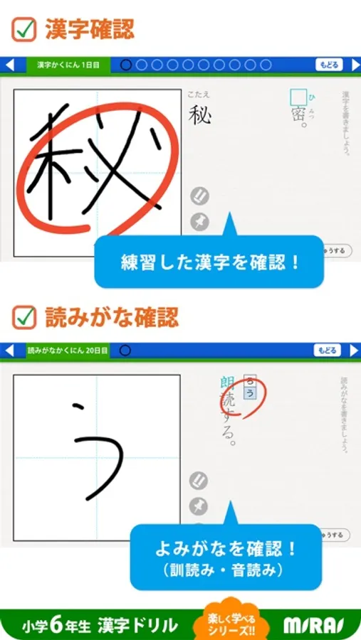 ・ Correctly written kanji characters are marked, so it’s easy to check your progress